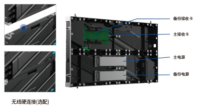 可选双接收卡、双电源备份,7*24小时连续运行不黑屏